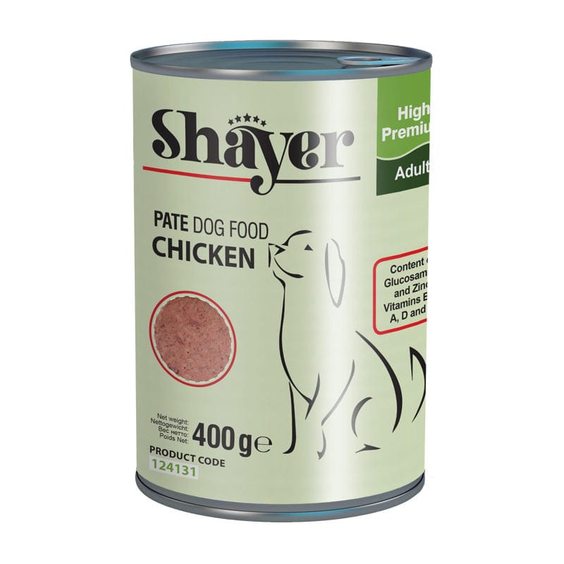 کنسرو غذای سگ با طعم مرغ شایر Shayer Pate With Chicken وزن 400 گرم
